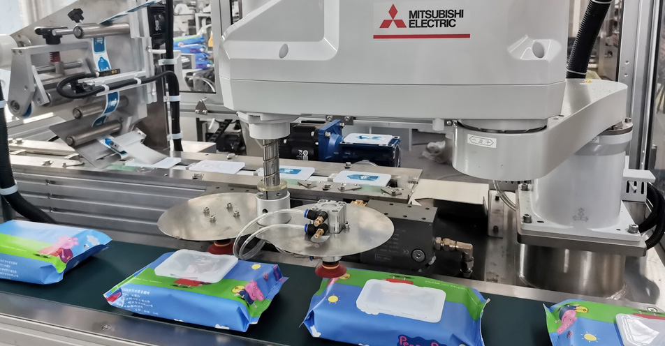 本機使用三菱機器人高剛性機械臂,視覺識別技術(shù)、傳送帶跟著技術(shù)等完美結(jié)合。在線可以完成自動取蓋、貼標、涂膠、粘蓋等一系列動作,更換蓋子規(guī)格時,在觸摸屏操作切換。節(jié)省人力,從而降低用工成本。極大地提高生產(chǎn)效率和產(chǎn)品合格率。